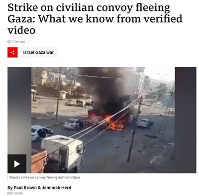 我们之前介绍过以色列国防军的逆天操作,先撒传单让110万加沙平民一天之内从北部迁到南部,传单上指明了安全的逃生路线,然后等平民车队经过的时候,用导弹袭击,造成70+死亡。