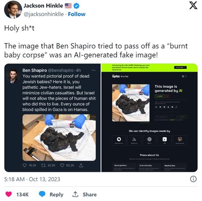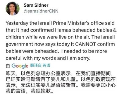 应该说以色列的信息战效果是非常好的,比如像“斩首儿童”、“焚烧后的儿童尸体”等等,虽然事后要么被报道者本人证明是虚构故事,要么被证明是AI合成,但事实证明“大声造谣、小声辟谣”的手段永远是有效的,这两天我看不管是FOX还是跟爸爸屁股很紧的台湾省媒体,还在一本正经、恍若不觉地拿“斩首儿童”等假消息做分析,用来煽动仇恨,抢夺道德高地。
