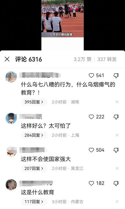 没曾想,这段视频随即引发了线上线下的激烈争论,有人叫好点赞,有人担忧漫骂。支持学生表演的“抗日”的和反对学生表演的“亲日”的,吵得不可开交。还有一些人认为这些是“乌烟瘴气”的东西,说明我们的教育出了问题