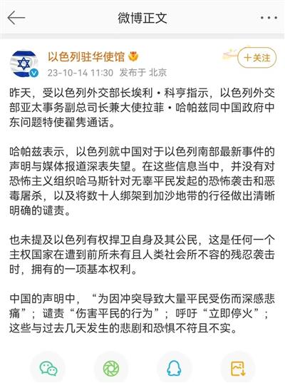要知道,从中方特使跟以方通话时的表态来看,已经是相当客气,没有把“两国方案”怼到以色列脸上。你问我为啥知道中方没说“两国方案”?你看看以色列人的表达方式,要是我们跟它讲到了“两国方案”,他能不提?