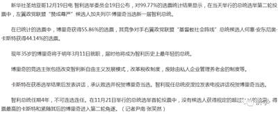 202112月19日35岁的左翼政党联盟“赞成尊严”候选人加夫列尔·博里奇当选新一届智利总统,并将在2022年3月11日就职,他成为智利历史上最年轻的总统。