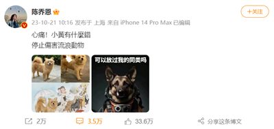 陈乔恩等多位演艺明星“为流浪狗发声”的新闻霸占了今天的热搜榜,来势汹汹。