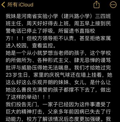 2023年10月31日上午,吕某的姐姐吕女士上网发帖称,自己接到民警电话,说妹妹已经于10月26日自杀。