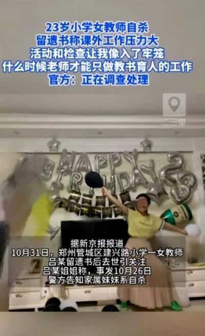 根据记者的调查,吕某自杀的原因主要是课外工作的压力太大,领导安排的大量和教学无关的活动和检查让她不堪重负。