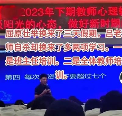 女老师因开会写材料过多而自杀后,领导要求所有老师开会写材料