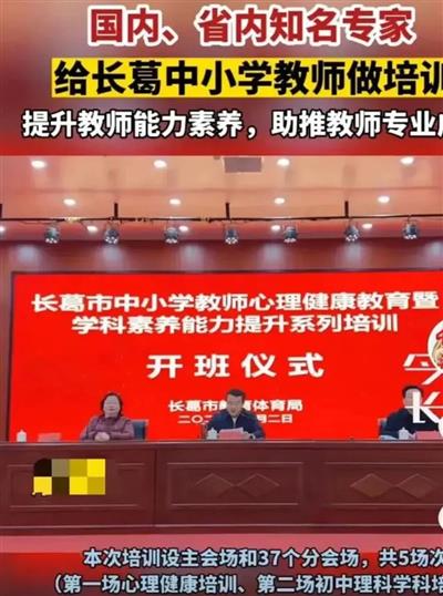 长葛市的教育系统召集了全市中小学老师集体开大会,设了主会场和37个分会场,连续进行了5场心理健康培训。