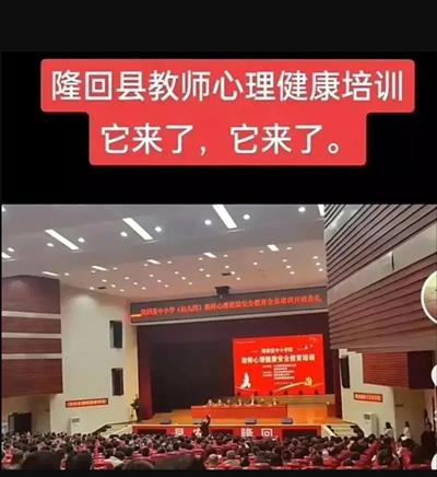 隆回县的教育系统召集了全县中小学教师集体开大会,集体进行心理健康培训。