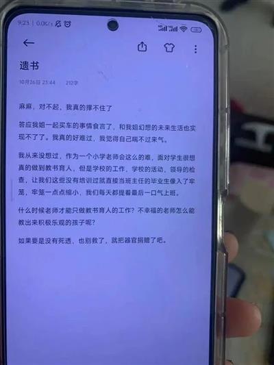 吕老师自杀的本意是为了抗议领导们安排的课外任务过重,开会写材料的事情过多,希望能用自己的生命换来一个其他老师好好休息的机会,能只做教书育人的工作。