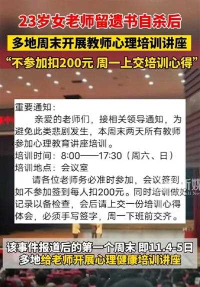 为避免女老师因开会写材料过多而自杀事件重演,领导们召集所有老师在周末休息时间集体开会写材料?
