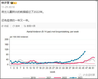 网络上有人贴的荷兰今年儿童肺炎的数据,已经高于2022年。