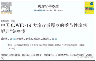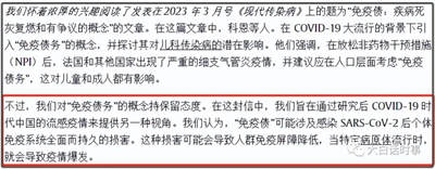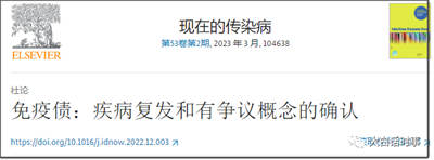《传染性疾病时报》在2023年11月14日发布了我们国内一个研究团队的文章,该文章反驳了免疫债假说。