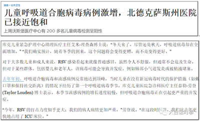 纽约时报在2023年11月10日的一篇报道称,儿童RSV病例激增,北德克萨斯州医院已接近饱和。
