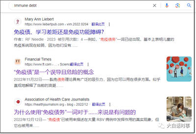 你在谷歌搜索免疫债的英文单词“Immune debt”,就会出来一堆反驳免疫债的新闻报道和论文。