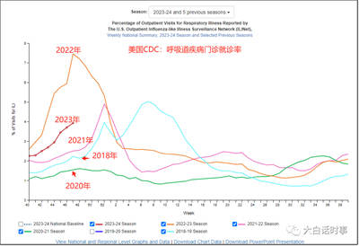 关键是,今年目前美国这个呼吸道传染病的爆发曲线,也是远高于往年的正常曲线,仅次于去年。