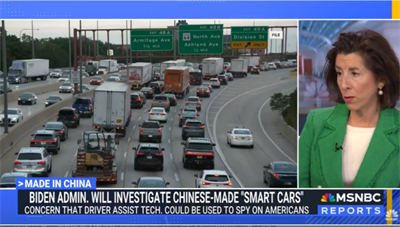 当地时间2月29日,美国总统拜登宣布将对中国制造的汽车展开调查;次日,美国商务部长雷蒙多接受美国全国广播公司(MSNBC)采访时声称,如今的汽车如同“装了轮子的苹果手机”,可以记录大量信息,“想象一下,假如有数百万辆中国汽车在美国的道路上行驶,每天每分钟都在收集数百万美国人的数据,然后把这些数据传回北京……”“试想一下,假如有300万辆中国汽车行驶在美国道路上,而北京可以让它们同时熄火”,这将对美国国家安全构成严重威胁。