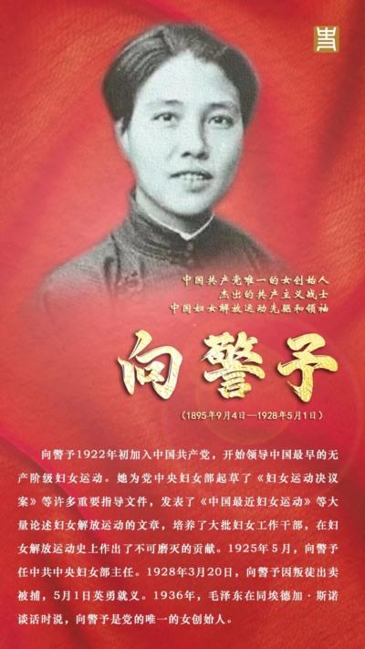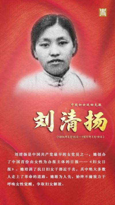 三八国际劳动妇女节是为了纪念世界各国妇女争取和平、平等、发展的节日。今天,让我们一同致敬我国为妇女解放事业而奋斗的杰出女性:邓颖超、蔡畅、康克清、向警予、史良、缪伯英、李贞、何香凝、帅孟奇、刘清扬、杨之华、张挹兰……还有无数的先驱们。为铭记,更为传承!祝所有女性妇女节快乐!
