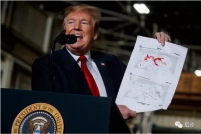 2019年3月,懂王曾大声告诉全世界:ISIS已从地图上消失!他还拿着地图对记者说“恭喜,恭喜!”
