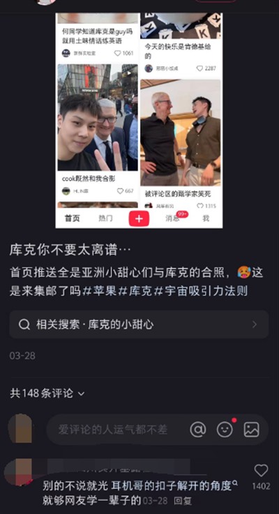 其实这次库克来中国,还有比何同学抽象得多的事情。由于库克的性取向,导致有些同样性取向的用户在网上发布和库克制造“偶遇”的内容。你看,这何止是讨好呢?