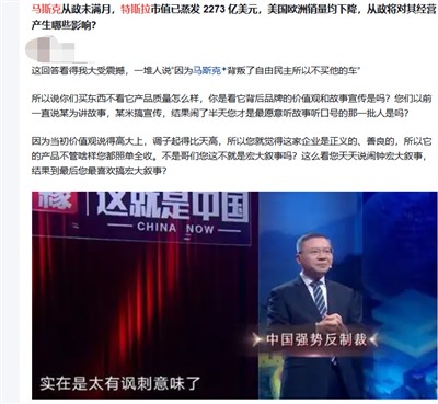 所以,何同学对库克的“土味情话”,未必就是基于利益的谄媚,也很可能是发自真心的“不吝啬表达和赞美”。就像以前国内很多特斯拉狂热粉,以为只是单纯因为“外国月亮就是圆”,结果马斯克投入特朗普怀抱之后,大家竟然发现真的有些中国用户声称“马斯克背叛了普世价值观,以后不会再买特斯拉”。
