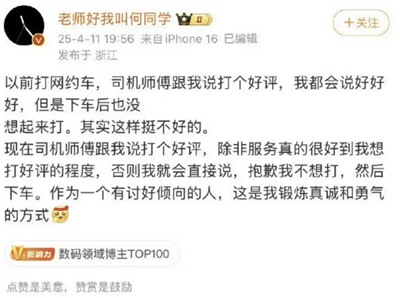 这里不讨论B站在商业层面如何走到今天这个地步。最近又想起《后浪》,除了又是一年五四到来,还因为前段时间关于何同学的两个事情。第一个事情是他前段时间发微博称“拒绝给网约车司机好评是锻炼真诚和勇气的方式”,引发批评后删除了该博文。