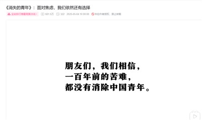 2025年的五四,B站又出了个视频。主题早已不再是《后浪》那种意气风发,而是先用“焦虑”议题讨好一波年轻人(没错,现在很多时候媒体制造的青年焦虑议题本质上也是为了讨好),然后又来了一波B站式的小确幸。看B站展示的青年生活,参与B站展示的青年生活,从五年前后浪的价值宣告变成了脱离焦虑的解药。