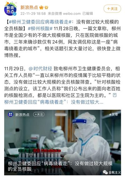 这里想提一个地儿——反观始终没有被核子基因等核酸公司过分染指的广西省柳州市,2022年11月时开始成了舆论焦点,格外引人注目: