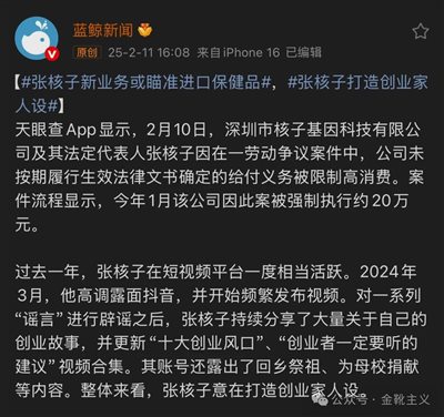 甚至,到到2025年,张核子仍然在向世人“展示”他的先知能力——去年年底,“核子基因集团”官方公众号曾发布“核子基因项目推介会”相关内容,邀请合作商共创大健康事业。