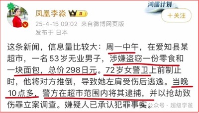 今年4月,一名53岁的日本无业老汉盗窃了一份零食和一块面包,72岁的老奶奶警卫上前制止时被53岁老汉推倒。