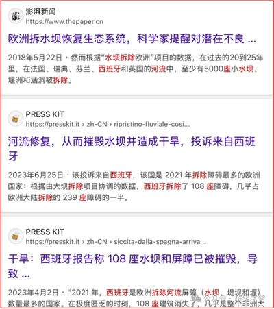拆了多少呢?跟四川面积差不多的西班牙,仅2021年就拆了100多座。结果这一拆不要紧,西班牙2023年就发生了500年来最严重的干旱,一个月热死了3000人,2024年就发生了洪水,冲走了二三百人。