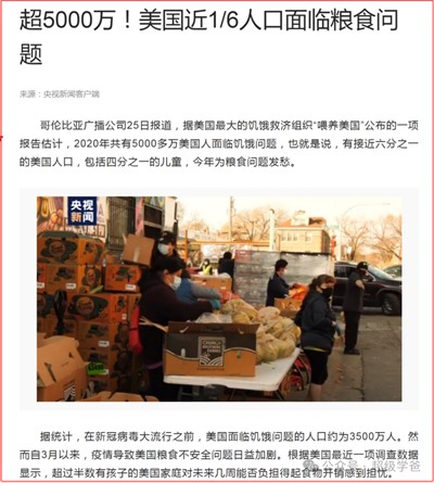在新冠大流行之前,美国有3500万人口面临饥饿问题。2020年疫情爆发之后,这一数字超过了5400万,其中儿童超过了三分之一。