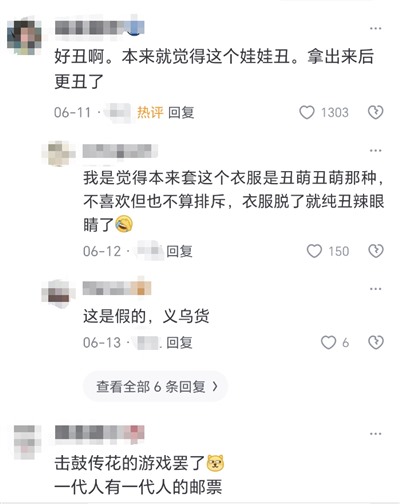 还说这玩意比玲娜贝儿都不如,玲娜贝儿高低还占个审美,还能当个可爱表情包。