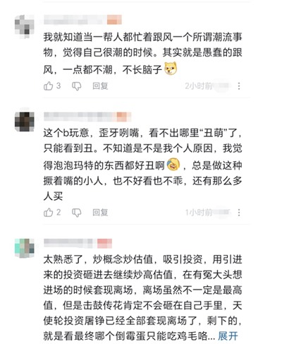 我是不太懂,1个成本几块钱的塑料娃娃强行代表年轻人,说年轻人都喜欢,不然不可能这么火。