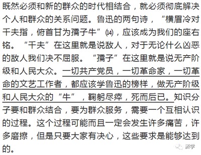 1942年5月毛主席《在延安文艺座谈会上的讲话》的“结论”末尾处,讲了这样一段: