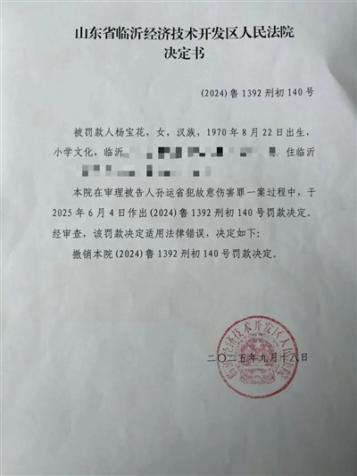 9月19日,山东省临沂市经济技术开发区人民法院(下称“经开法院”)就“农妇辱骂法官被罚10万”一事作出通报,称适用法律错误,已撤销罚款决定、退还10万罚款及利息、向当事人诚恳道歉、并“依法依纪追究相关人员责任”。