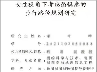 而且很多是强行关联,比如下面这个测绘专业的,研究方向是地图制图与地图符号设计,也要搞出一个《女性视角下考虑恐惧感的步行路径规划研究》