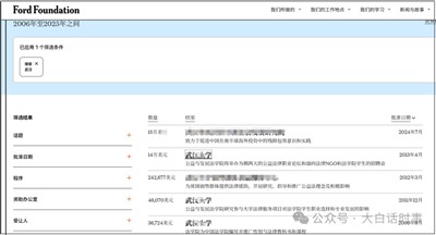 比如,在福特基金会官网上,就可以找到,福特基金会对武汉某大学的资助。