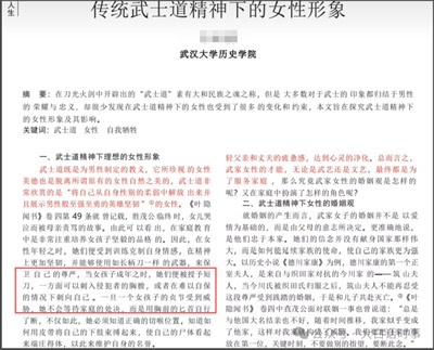 甚至在论文结尾说:“(日本)女性的这种地位更多地来源于环境给予他们因而产生的对于自我牺牲精神的认同。”