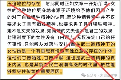 这屁股都歪到逆天了,封建制度是糟粕,压迫女性是事实没错,但日本武士道就成了“独立女性”,这也太离谱了,稍微对日本历史了解的人,应该都很清楚,古代日本女性的地位,在全世界所有封建社会里,都是最低的那一档,哪怕到现代,到今天,日本女性在现代社会里也是较低的水平。