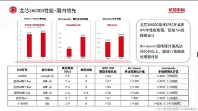日前,龙芯发布了龙芯3C5000服务器处理器,并联合生态伙伴共同发布新一代国产服务器基础软硬件平台。这次发布会有两个亮点,一是3C5000处理器,二是3A6000仿真成绩。
